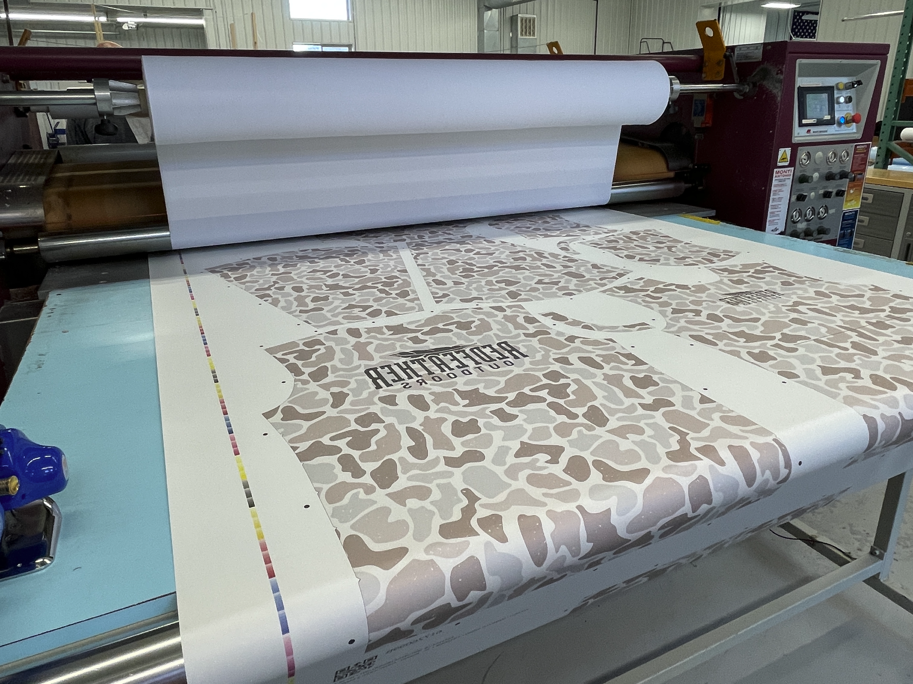 We use a process called dye sublimation. Instead of printing ink on top of the fabric (which cracks and peels over time), we print your design onto special transfer paper. Then, using massive, high-heat presses, we turn that ink into a gas that bonds directly with the fibers of our premium Italian fabrics.